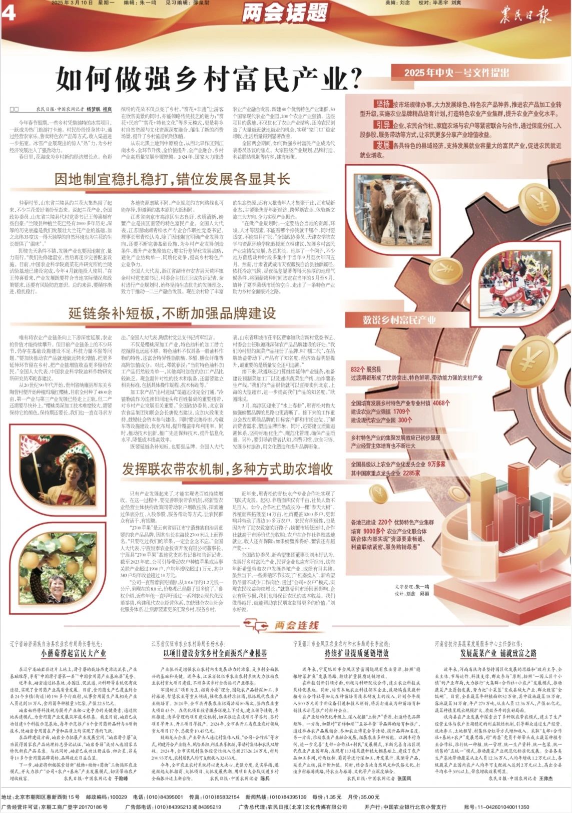 全國兩會期間,如何做強鄉(xiāng)村富民產(chǎn)業(yè)成為代表委員熱議的焦點。大家圍繞產(chǎn)業(yè)規(guī)劃、品牌打造、利益聯(lián)結(jié)機制等內(nèi)容,建言獻策。