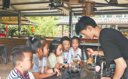 最初,與普洱市大多數(shù)咖啡莊園一樣,小凹子咖啡莊園生產(chǎn)的咖啡豆大部分用于原料供應(yīng)。然而,一段時間咖啡豆的價格波動讓他開始思考轉(zhuǎn)型?!霸蹅冞@兒生態(tài)環(huán)境好,發(fā)展旅游有基礎(chǔ)?,F(xiàn)在人們對咖啡的興趣也不止于品嘗,我們可以試試文旅融合的路子。”廖世豪說。