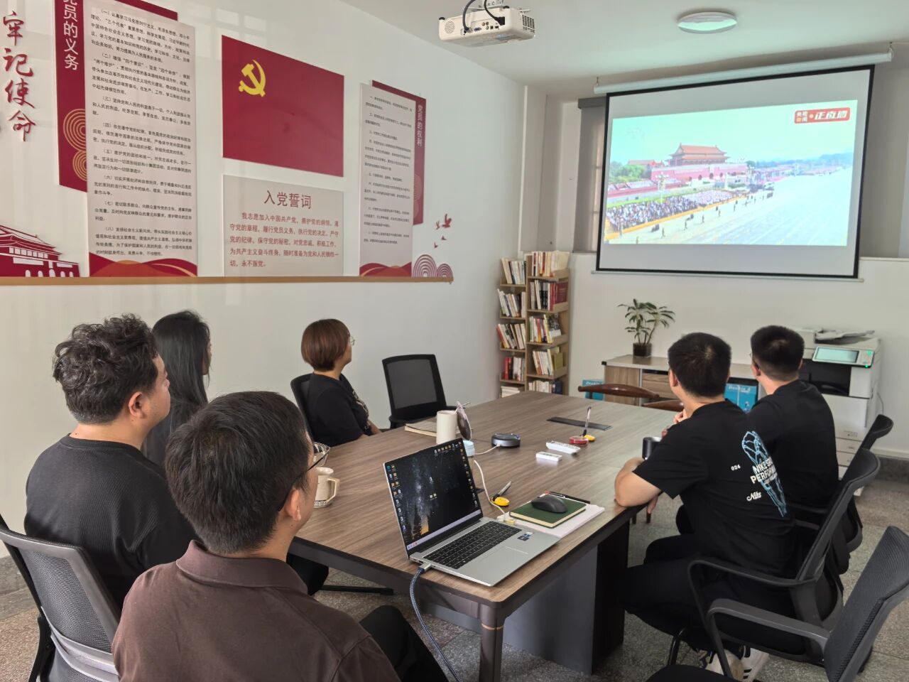 三名年輕同志結(jié)合個人實際分享觀禮感悟:楊紫廷同志談道,鐵血榮光是由革命先烈用鮮血與生命鑄就,在侵華日軍南京大屠殺遇難同胞紀(jì)念館,“不為復(fù)仇誓言銘記南京歷史遺訓(xùn),為了大愛志愿謀求世界和平永續(xù)”的標(biāo)語,與閱兵傳遞的“三個必勝”信念一脈相承,更讓她深知和平之珍貴;段國興同志分享了自己的“軍人夢”,雖未能如愿穿上軍裝,但閱兵中大國重器的亮相、徒步方陣鏗鏘的步伐,都讓他真切感受到“鋼鐵長城已鑄就”的安心,他將把這份震撼轉(zhuǎn)化為動力,立足崗位,為“三農(nóng)”事業(yè)添磚加瓦;董定臣同志感慨,新中國成立70周年時曾與幼子一同觀看閱兵,孩子一連串的提問與一句“祖國好厲害”讓他記憶猶新,歷經(jīng)新冠疫情、芯片制裁等挑戰(zhàn)后再看閱兵,國家軍工與經(jīng)濟的突破更顯來之不易,他將以務(wù)實態(tài)度優(yōu)化服務(wù),以崗位行動守護盛世。
