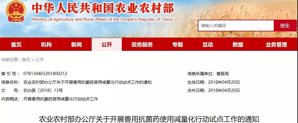 另外,農(nóng)業(yè)農(nóng)村部在近期發(fā)布了《農(nóng)業(yè)農(nóng)村部辦公廳關(guān)于開展獸用抗菌藥使用減量化行動試點工作的通知》。農(nóng)業(yè)農(nóng)村部決定開展獸用抗菌藥使用減量化行動,組織制定了《獸用抗菌藥使用減量化行動試點工作方案(2018—2021年)》(以下簡稱“方案”),確定了各地2018年獸用抗菌藥使用減量化行動試點養(yǎng)殖場數(shù)量。