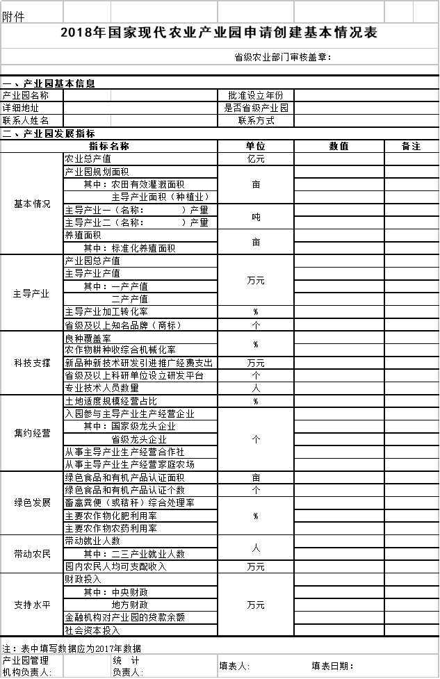 附件:2018年國家現(xiàn)代農(nóng)業(yè)產(chǎn)業(yè)園申請創(chuàng)建基本情況表