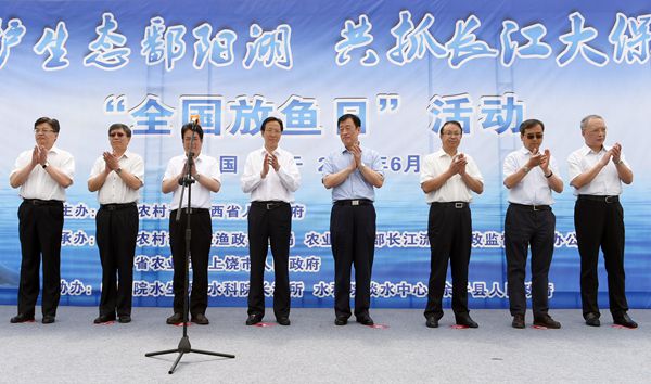 6月7日,作為“全國(guó)放魚(yú)日”主會(huì)場(chǎng)活動(dòng),農(nóng)業(yè)農(nóng)村部會(huì)同江西省人民政府在“長(zhǎng)江之腎”鄱陽(yáng)湖聯(lián)合舉辦水生生物增殖放流活動(dòng),農(nóng)業(yè)農(nóng)村部部長(zhǎng)韓長(zhǎng)賦,江西省委書記、省長(zhǎng)劉奇等出席活動(dòng)?;顒?dòng)期間,共向鄱陽(yáng)湖放流四大家魚(yú)、河蟹和胭脂魚(yú)等水生生物苗種230余萬(wàn)尾,還首次采用無(wú)線電遙測(cè)技術(shù),對(duì)鄱陽(yáng)湖長(zhǎng)江江豚的晝夜活動(dòng)規(guī)律開(kāi)展研究,為更好地保護(hù)和拯救長(zhǎng)江江豚提供科學(xué)支撐。