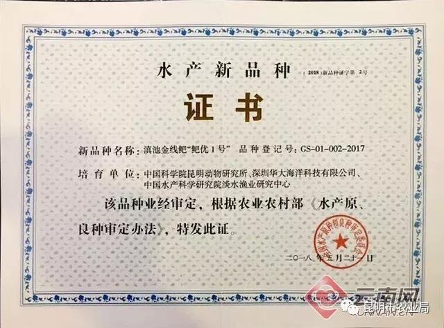 日前,由中國(guó)科學(xué)院昆明動(dòng)物研究所聯(lián)合深圳華大海洋科技有限公司、中國(guó)水產(chǎn)科學(xué)研究院淡水漁業(yè)研究中心研發(fā)培育的新品種——滇池金線鲃“鲃優(yōu)1號(hào)”,正式獲農(nóng)業(yè)農(nóng)村部的官方認(rèn)定,在水產(chǎn)種業(yè)發(fā)展論壇上獲得農(nóng)業(yè)農(nóng)村部頒發(fā)的水產(chǎn)新品種證書。這標(biāo)志著滇池金線鲃?dòng)型麑?shí)現(xiàn)規(guī)?;虡I(yè)養(yǎng)殖。