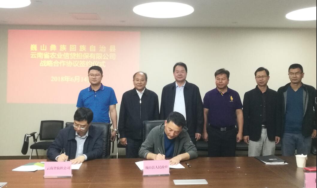 6月14日上午,公司與巍山彝族回族自治縣簽訂了戰(zhàn)略合作協(xié)議。巍山縣縣委副書(shū)記、縣長(zhǎng)王利偉率縣財(cái)政局、農(nóng)業(yè)局及巍山縣農(nóng)村商業(yè)銀行與省農(nóng)擔(dān)公司進(jìn)行座談,省農(nóng)擔(dān)公司郭影董事長(zhǎng)、杜開(kāi)波總經(jīng)理參加會(huì)議,雙方就共同推進(jìn)巍山縣農(nóng)擔(dān)工作深入交換意見(jiàn)。