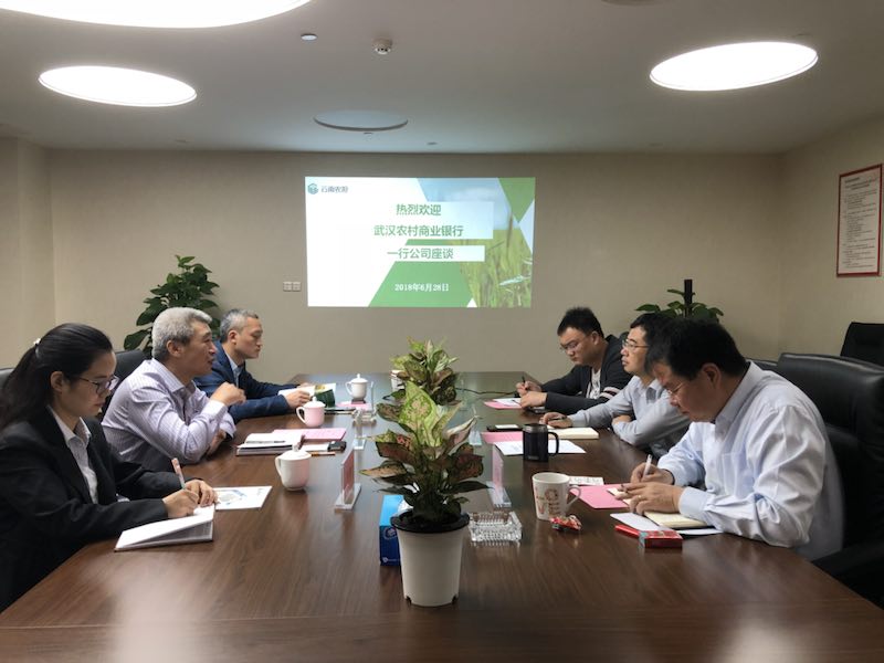 6月28日上午,武漢農(nóng)商行村鎮(zhèn)銀行駐云南省管理部總經(jīng)理呂海翔、副總經(jīng)理徐凱到省農(nóng)擔(dān)公司座談。公司董事長郭影、總經(jīng)理杜開波出席座談。雙方就業(yè)務(wù)拓展、風(fēng)險(xiǎn)風(fēng)控、風(fēng)險(xiǎn)共擔(dān)等問題深入交換意見,為下一步公司與省內(nèi)19家長江系村鎮(zhèn)銀行全面開展合作奠定了基礎(chǔ)。