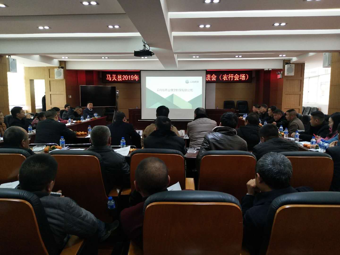 會(huì)上,副縣長冉永富首先發(fā)表講話,本次座談目的是加強(qiáng)金融機(jī)構(gòu)與小微經(jīng)營主體之間的了解,解決小微企業(yè)“融資難”問題。文山辦事處工作人員施甫能介紹了農(nóng)擔(dān)公司成立背景、業(yè)務(wù)范圍、服務(wù)對(duì)象、2018年農(nóng)擔(dān)經(jīng)營成果、業(yè)務(wù)準(zhǔn)入、擔(dān)保政策等內(nèi)容,詳細(xì)解答企業(yè)負(fù)責(zé)人提出的問題。農(nóng)行州分行三農(nóng)部副總經(jīng)理王亞嬌、小微金融部副總經(jīng)理朱紅兵分別就農(nóng)行“服務(wù)三農(nóng)”金融產(chǎn)品、小微企業(yè)貸款產(chǎn)品,對(duì)金融產(chǎn)品的準(zhǔn)入條件、服務(wù)對(duì)象、服務(wù)行業(yè)、產(chǎn)品優(yōu)勢(shì)等信息進(jìn)行詳細(xì)解說。馬關(guān)縣農(nóng)行行長李遠(yuǎn)鋒對(duì)馬關(guān)農(nóng)行作了新年指導(dǎo),馬關(guān)農(nóng)行要做好“三農(nóng)”信貸工作,努力擴(kuò)大農(nóng)業(yè)信貸工作。中國郵政儲(chǔ)蓄銀行馬關(guān)縣負(fù)責(zé)人李代銀、文山馬關(guān)長江村鎮(zhèn)銀行行長趙繼奎在會(huì)上對(duì)長江村鎮(zhèn)銀行產(chǎn)品作了簡單介紹。