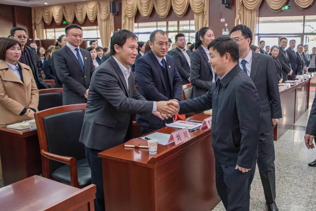 在總結(jié)會(huì)會(huì)場(chǎng),張巖松廳長與省農(nóng)擔(dān)公司優(yōu)秀員工親切握手,一一詢問大家的工作情況。張巖松廳長對(duì)2018年省農(nóng)擔(dān)公司取得的不俗成績給予了充分肯定。他表示,全體農(nóng)擔(dān)員工按照省委、省政府的安排部署,開拓創(chuàng)新、銳意進(jìn)取,機(jī)構(gòu)覆蓋全省16個(gè)州市,業(yè)務(wù)覆蓋118個(gè)縣,圓滿完成新增涉農(nóng)貸款擔(dān)保50億的任務(wù),是大家共同努力、辛勤工作的成果,值得鼓勵(lì)和祝賀。