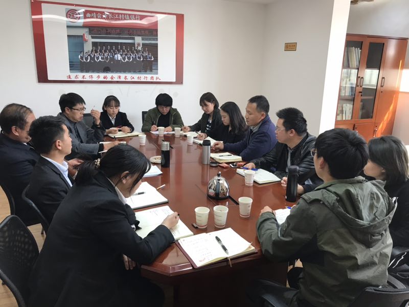2019年2月12日下午,農(nóng)擔一部負責人劉川率曲靖辦事處全體員工赴曲靖會澤長江村鎮(zhèn)銀行交流學習。曲靖市會澤長江村鎮(zhèn)銀行副行長馬發(fā)寬、副行長左儒林、業(yè)務(wù)部負責人代穎、薛???、微貸中心負責人蔣紅浪、風險管理部負責人饒文艷及辦公室負責人譚明秀等出席座談會。