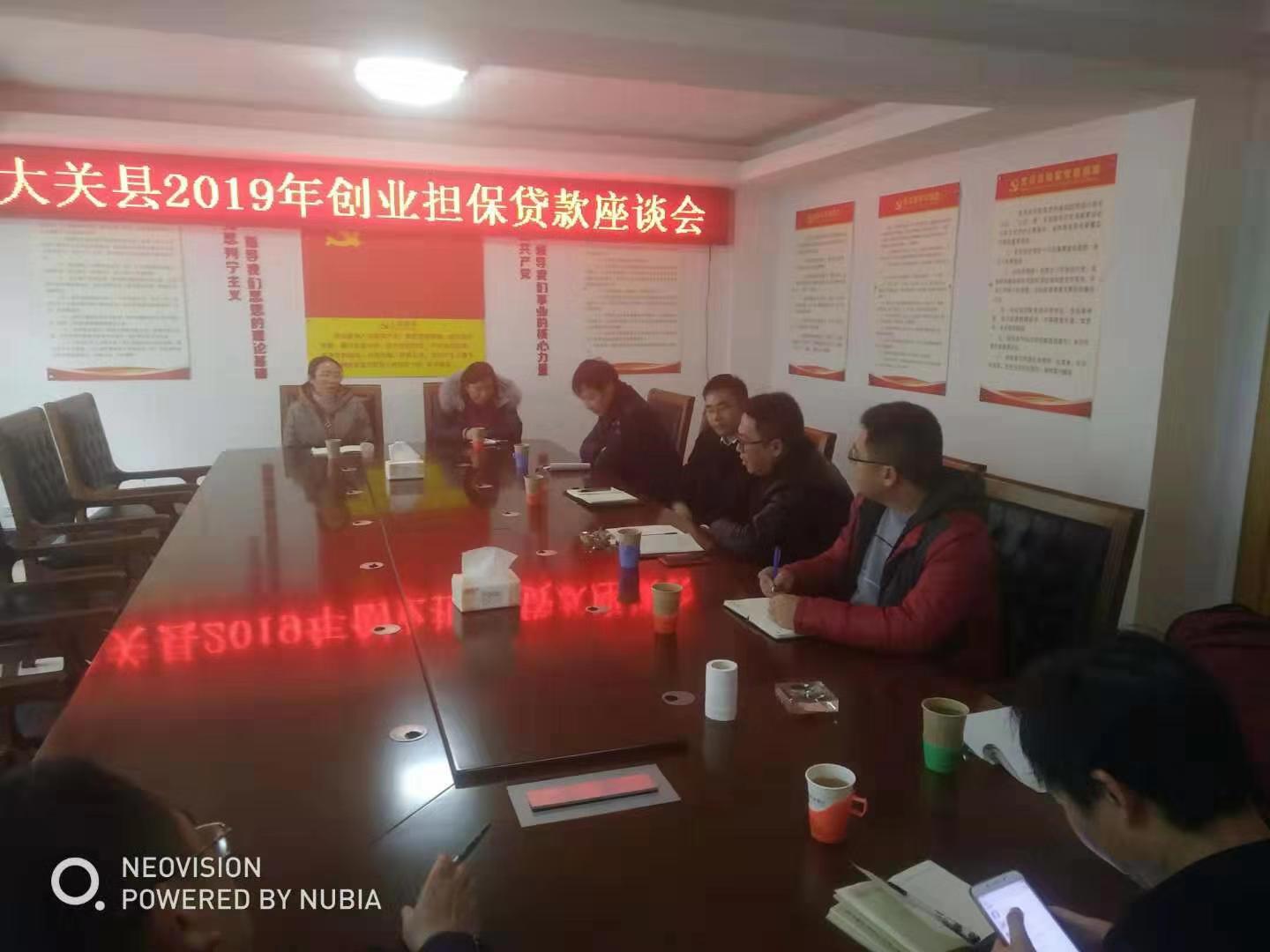 2月19日,昭通辦事處負(fù)責(zé)人朱磊攜辦事處人員到中國農(nóng)業(yè)銀行大關(guān)縣支行與大關(guān)縣勞動(dòng)就業(yè)局局長鄧飛、大關(guān)縣財(cái)政局涉外科陳清華、農(nóng)業(yè)銀行大關(guān)縣支行行長袁龍強(qiáng)圍繞農(nóng)擔(dān)與政府協(xié)議開展座談。