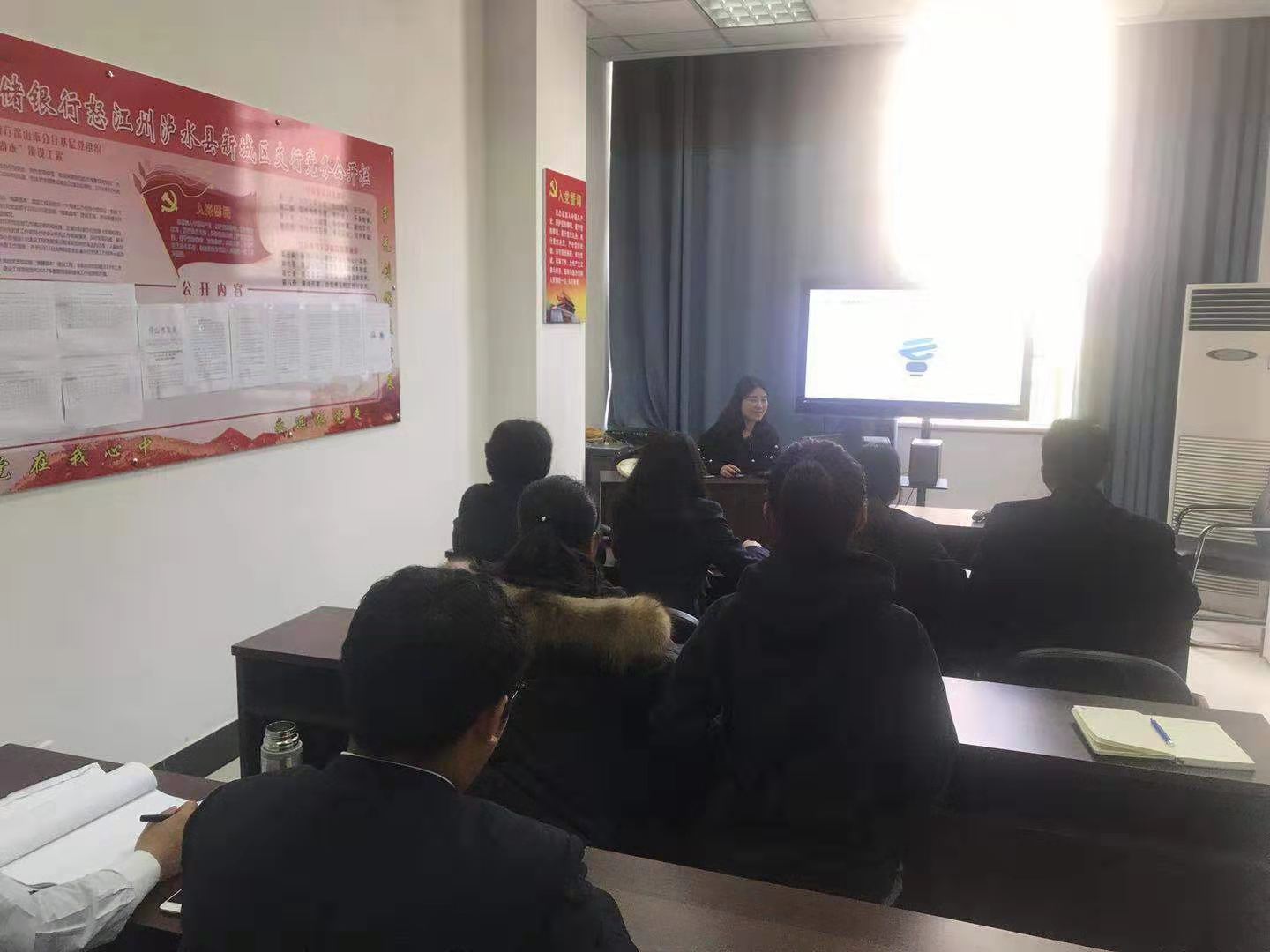 2019年3月6日,瀘水辦事處業(yè)務(wù)主管胡幫露帶領(lǐng)林本婧及瀘水辦事處全體人員應(yīng)邀參加郵儲(chǔ)銀行瀘水市支行組織的“銀擔(dān)保座談會(huì)”,并現(xiàn)場(chǎng)開展業(yè)務(wù)培訓(xùn)。郵儲(chǔ)銀行瀘水市支行長(zhǎng)董振宇、信貸部主任朱紅梅及全體信貸員出席了會(huì)議。