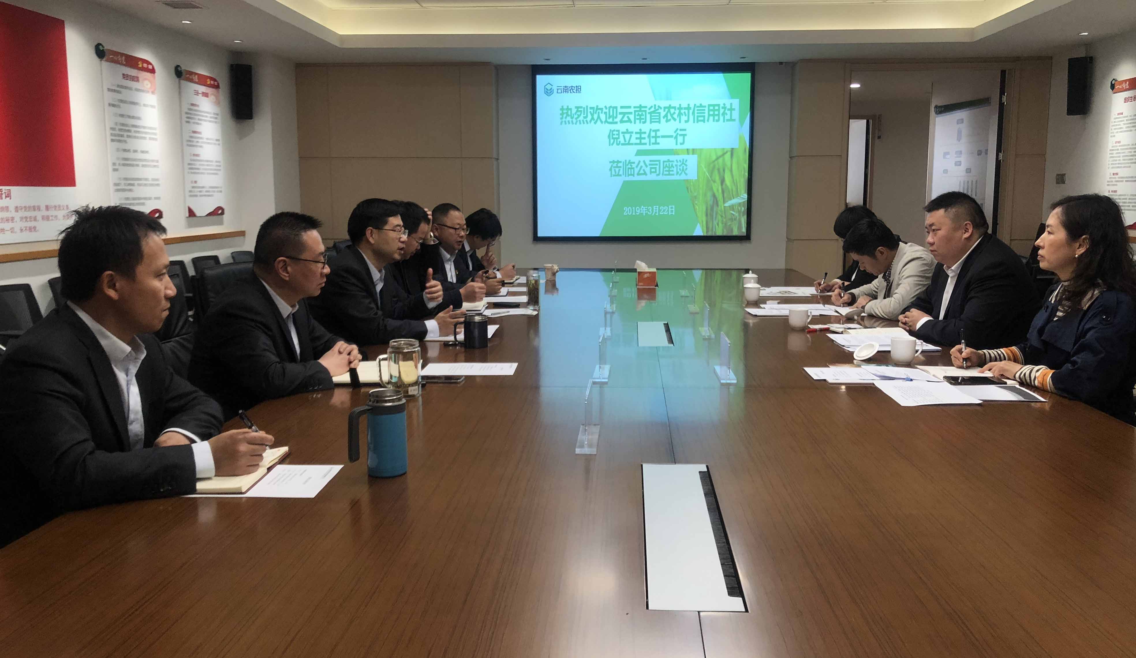 3月22日,云南省農(nóng)村信用社聯(lián)合社主任倪立率業(yè)務(wù)發(fā)展部、信貸管理部、昆明市農(nóng)信社到云南農(nóng)擔(dān)公司座談,公司郭影董事長、杜開波總經(jīng)理、廖寅皓副總經(jīng)理及風(fēng)控、業(yè)務(wù)、機構(gòu)等部門參加會議。會上,雙方就銀擔(dān)合作情況進行全面交流總結(jié),并對下一步深化合作達成一致意見。