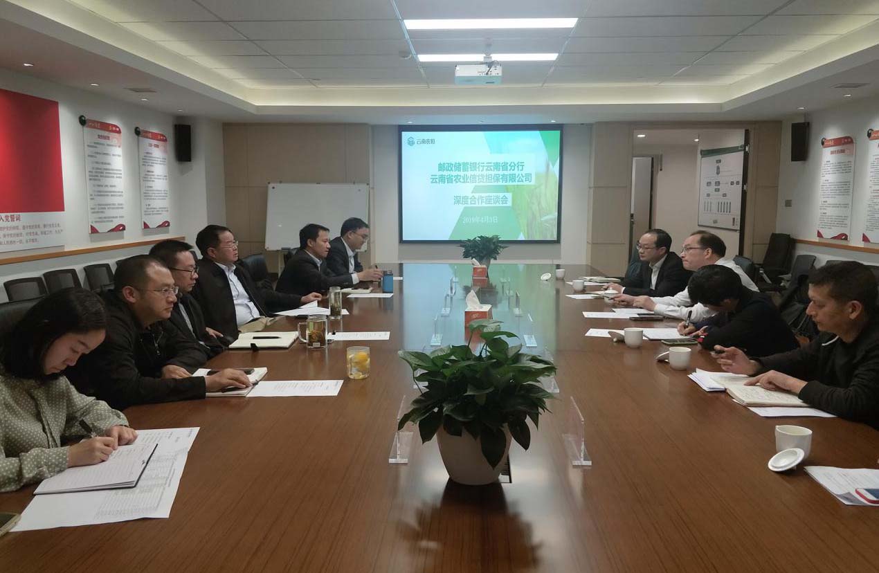 2019年4月3日下午,郵儲(chǔ)銀行云南省分行孟浩副行長(zhǎng)率三農(nóng)金融部、授信管理部、小企業(yè)金融中心、公司業(yè)務(wù)部到云南農(nóng)擔(dān)公司座談,公司杜開波總經(jīng)理、廖寅皓副總經(jīng)理及業(yè)務(wù)、風(fēng)控,機(jī)構(gòu)等部門參加座談。會(huì)上雙方就業(yè)務(wù)辦理效率及保后監(jiān)管等方面內(nèi)容交換意見,并對(duì)下一步工作方向達(dá)成一致。