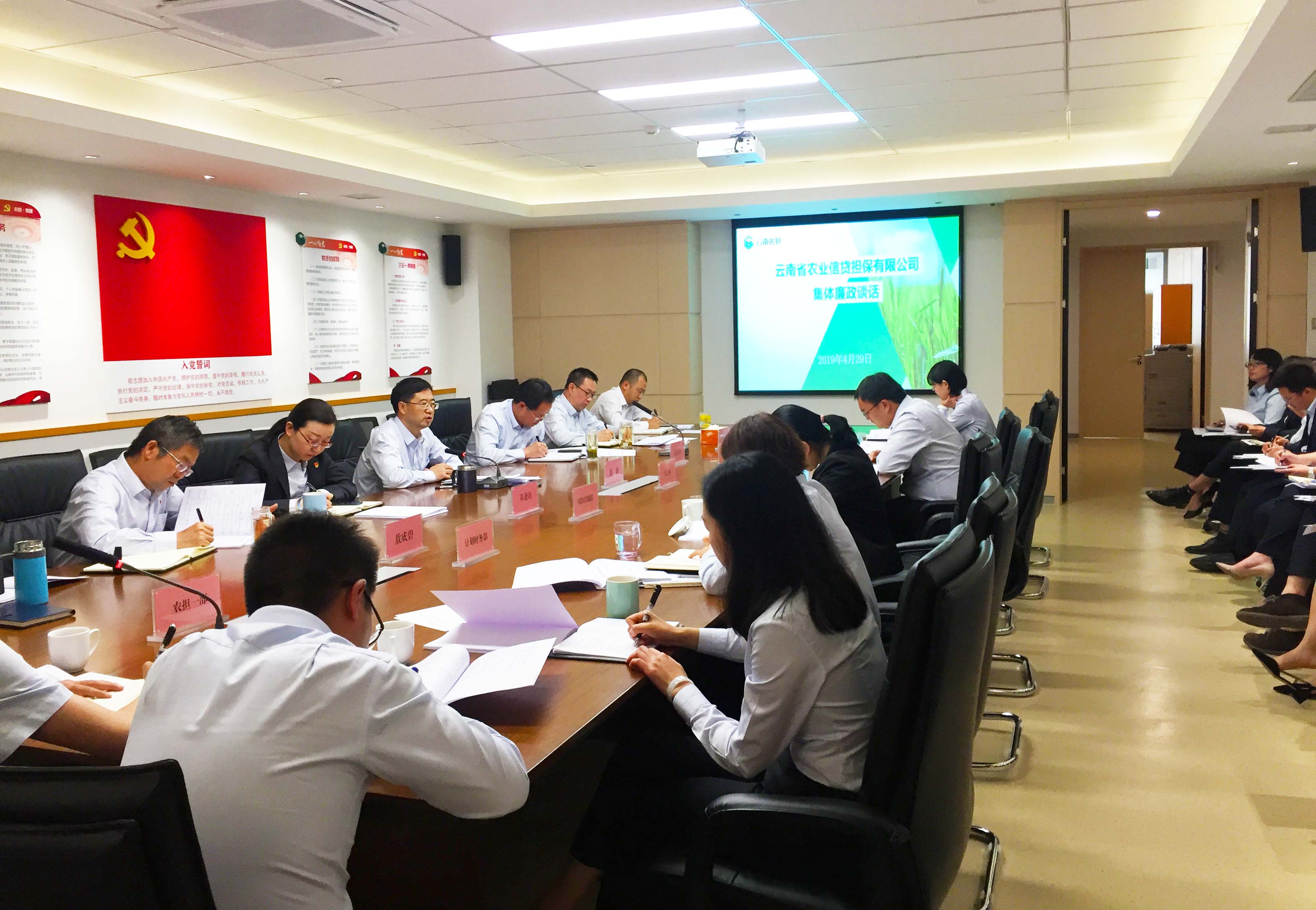 4月29日,云南省農(nóng)業(yè)信貸擔(dān)保有限公司利用召開春季業(yè)務(wù)推進(jìn)會之機(jī),開展了集體廉政談話。公司黨支部書記、董事長郭影同志向參會的公司領(lǐng)導(dǎo)、各部門及各分支機(jī)構(gòu)負(fù)責(zé)人、業(yè)務(wù)主管等進(jìn)行了集體廉政談話。