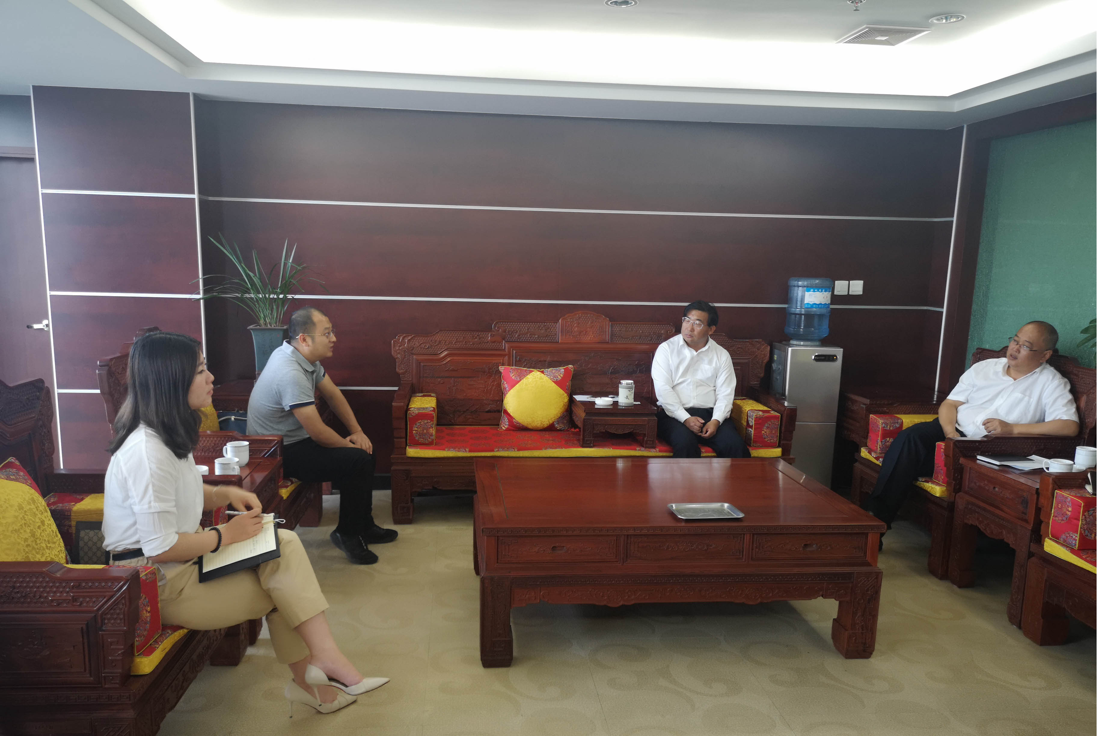 2019年5月7日,農(nóng)擔二部負責人賈萬文、保山辦事處業(yè)務主管胡幫露一行到騰沖農(nóng)村商業(yè)銀行開展座談會,與騰沖農(nóng)村商業(yè)銀行董事長文文、公司業(yè)務部總經(jīng)理趙明興進行了交流。