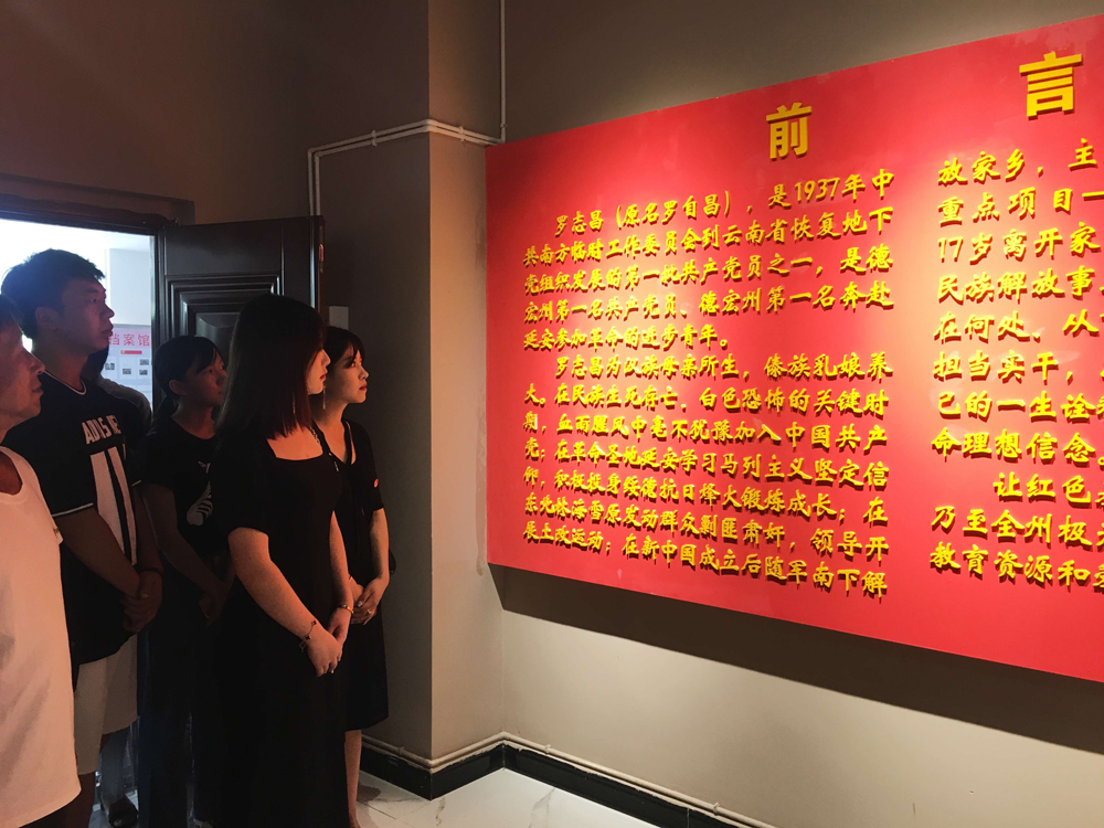 活動(dòng)中,全體黨員干部在胡幫露同志的帶領(lǐng)下重溫入黨誓詞。在講解員的引導(dǎo)和解說下,參觀學(xué)習(xí)了羅志昌革命史實(shí)陳列室,了解了黨在德宏州的發(fā)展歷史、并從“和諧家庭,少年立志”、“求學(xué)上進(jìn),秘密入黨”、“延安深造、綏德成長”、“云南解放回鄉(xiāng)建設(shè)”四方面學(xué)習(xí)了羅志昌同志一生為黨和人民解放事業(yè)奮斗的事跡。