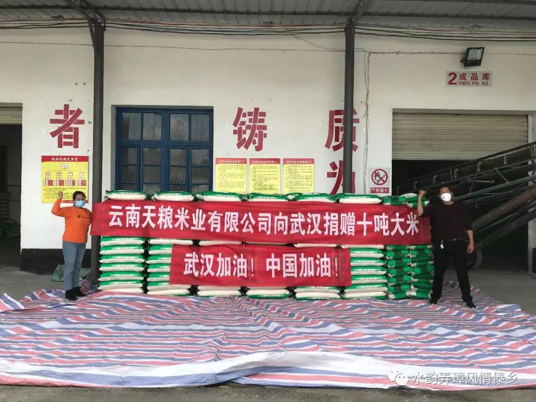 公司在保客戶云南天糧米業(yè)有限公司作為弄璋鎮(zhèn)本土的大米加工企業(yè),不忘企業(yè)的社會責(zé)任,帶頭捐贈10噸大米,同時,我公司在??蛻衾铥惤?、李開燦等人紛紛向武漢捐贈大米與土豆等農(nóng)作物,馳援湖北疫區(qū)。