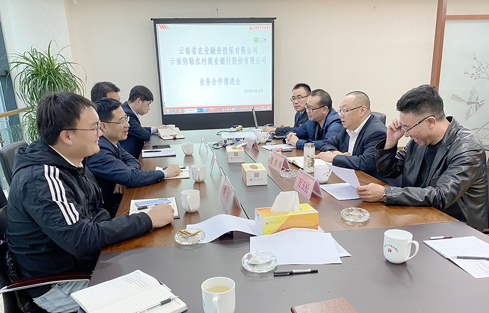為加快推進(jìn)全省復(fù)工復(fù)產(chǎn)、全面恢復(fù)經(jīng)濟(jì)社會(huì)秩序,云南農(nóng)擔(dān)公司積極協(xié)同合作銀行加大對(duì)農(nóng)業(yè)項(xiàng)目的擔(dān)保貸款投放,扎扎實(shí)實(shí)解決新型農(nóng)業(yè)經(jīng)營(yíng)主體“融資難”問題。4月,公司繼續(xù)“下基層、走一線”,郭影董事長(zhǎng)攜戰(zhàn)略發(fā)展部、農(nóng)擔(dān)業(yè)務(wù)相關(guān)同志分別至彌勒、玉溪等地調(diào)研。