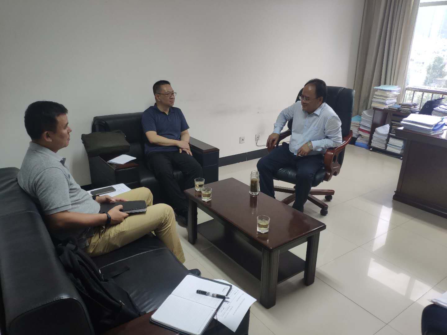 為持續(xù)鞏固政擔(dān)合作關(guān)系及跟進(jìn)政府風(fēng)險(xiǎn)補(bǔ)償金情況,2020年8月13日,公司副總經(jīng)理廖寅皓、農(nóng)擔(dān)一部負(fù)責(zé)人寸明杰攜臨滄辦事處前往臨滄市金融辦與主任羅廷榮就辦事處業(yè)務(wù)開(kāi)展情況及風(fēng)險(xiǎn)補(bǔ)償資金到位情況進(jìn)行了交流。