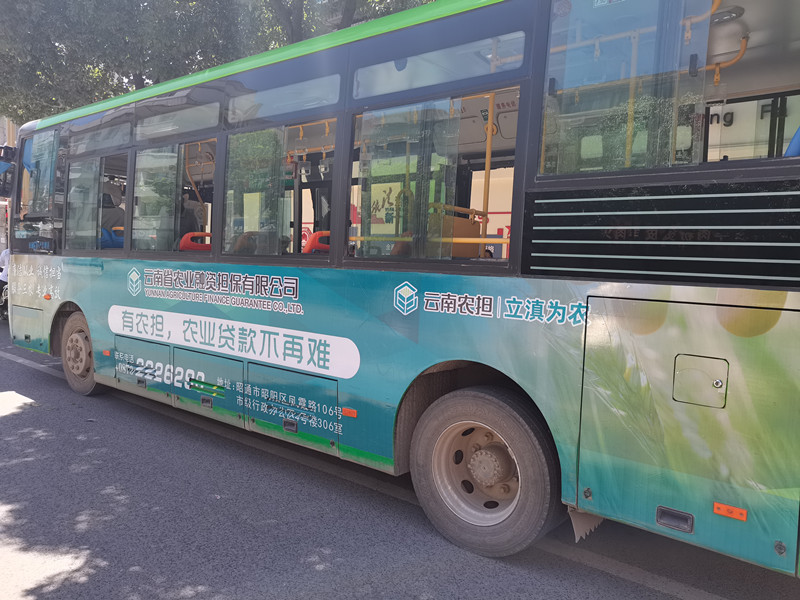 通過利用公交車人流量大,信息傳遞直觀和傳播速度快的特點,昭通辦事處在10輛公交車兩側(cè)及車尾張貼醒目的公司宣傳廣告,以“有農(nóng)擔(dān),農(nóng)業(yè)貸款不再難”為宣傳口號,向群眾最直觀地宣傳公司業(yè)務(wù)。