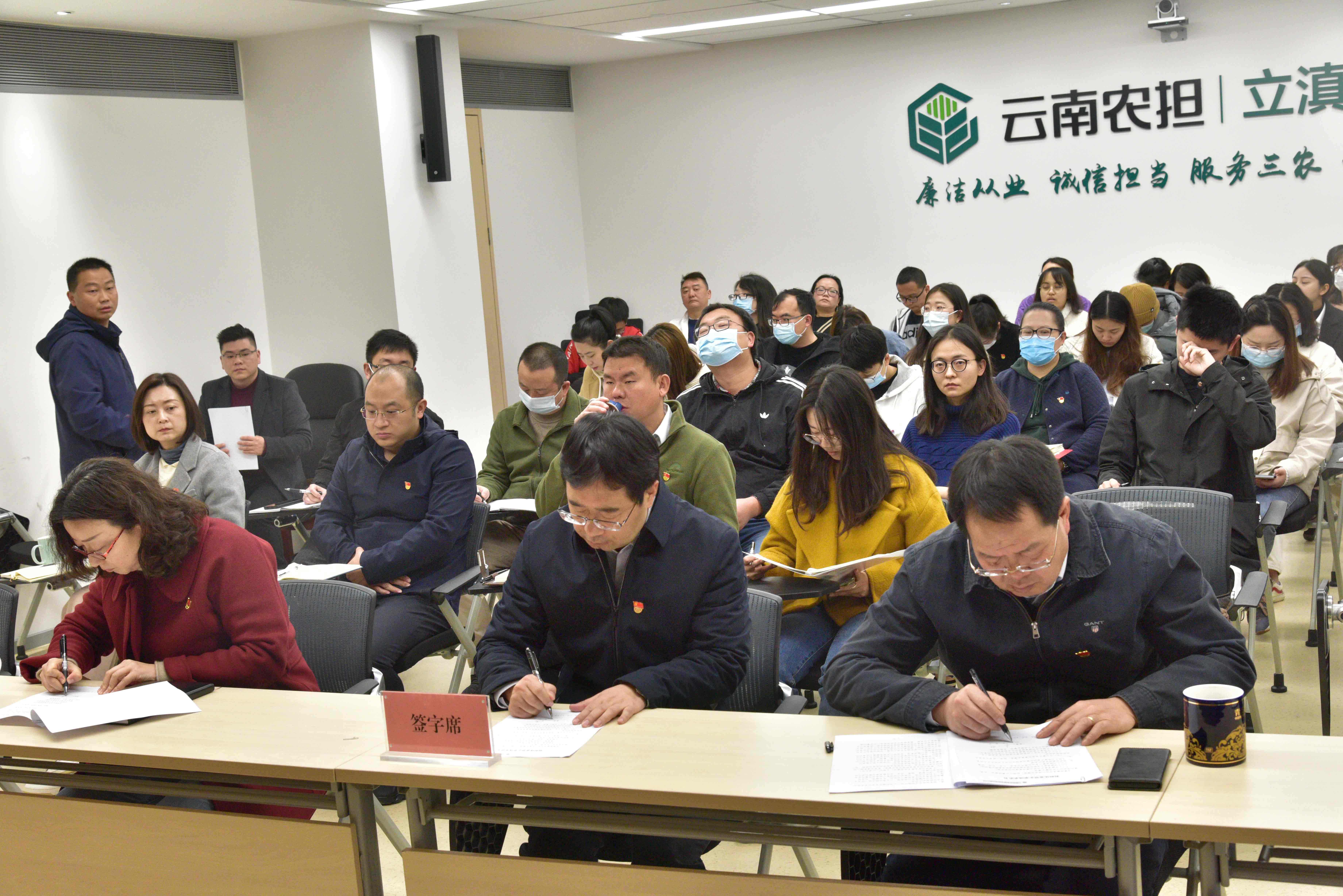 2月20日,云南省農(nóng)業(yè)融資擔保有限公司召開巡察整改專題警示教育大會。公司黨總支部書記、郭影作巡察整改專題警示教育宣講,組織員工簽訂《農(nóng)擔從業(yè)禁止事項承諾書》,黨總支部紀檢委員李建華作提升員工廉潔和服務意識培訓。會議由郭影同志主持,省公司全體員工參加了會議,州市辦事處員工通過視頻會議方式參會。