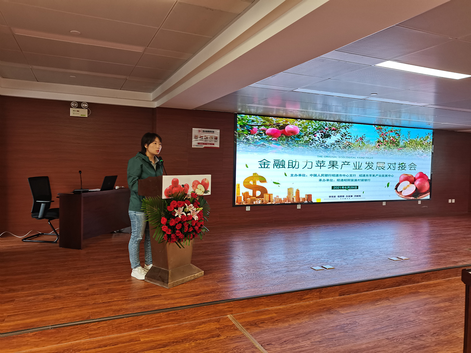 6月29日,昭通辦事處負(fù)責(zé)人劉明晨、項目經(jīng)理馬挺應(yīng)邀參加了由中國人民銀行昭通市中心支行、昭通市蘋果產(chǎn)業(yè)發(fā)展中心主辦,昭通昭陽富滇村鎮(zhèn)銀行承辦的“金融助力蘋果產(chǎn)業(yè)發(fā)展對接會”。