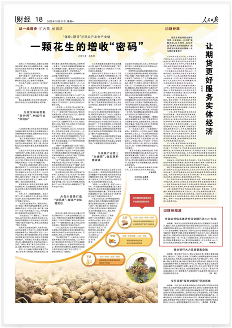 《人民日報》于2022年10月31日【財經(jīng)18版】刊發(fā)“財經(jīng)短波--全國農(nóng)擔體系累計擔保金額已達8597億元”。報道肯定了全國農(nóng)擔體系近年來的工作成效,并指出:全國農(nóng)擔體系為穩(wěn)住經(jīng)濟大盤和農(nóng)業(yè)基本盤發(fā)揮積極作用,成為各級地方政府推進鄉(xiāng)村振興的重要政策工具。