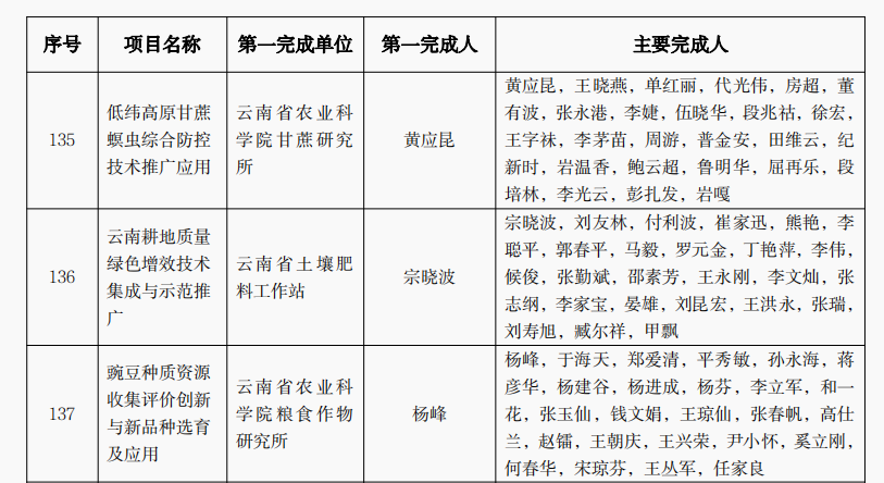 云南3個項目被授予農(nóng)業(yè)技術(shù)推廣成果獎二等獎