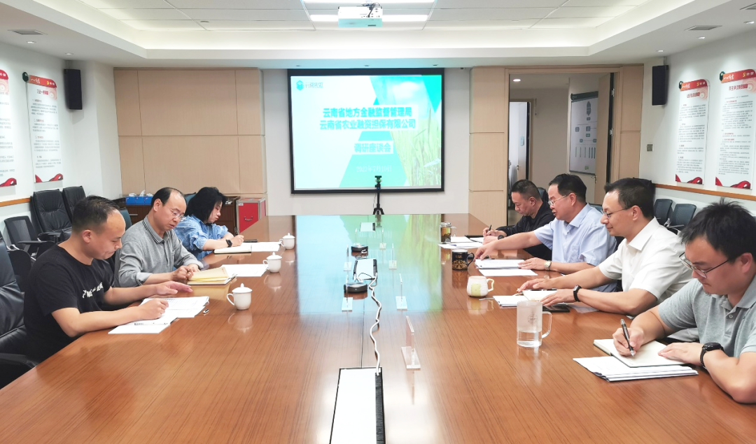 調(diào)研組一行詳細(xì)了解了農(nóng)擔(dān)政策要求,公司體系機(jī)構(gòu)建設(shè)、政銀擔(dān)合作、業(yè)務(wù)拓展等情況。左廣局長(zhǎng)指出,省農(nóng)擔(dān)公司認(rèn)真貫徹省委省政府領(lǐng)導(dǎo)決策部署和有關(guān)要求,竭盡全力為全省新型農(nóng)業(yè)經(jīng)營(yíng)主體提供融資擔(dān)保服務(wù),有效緩解了其“融資難、融資貴”問(wèn)題,業(yè)績(jī)突出,風(fēng)險(xiǎn)可控,充分體現(xiàn)了金融企業(yè)的大局意識(shí)和擔(dān)當(dāng)精神。他強(qiáng)調(diào),省委省政府高度重視云南省金融工作,并要求公司要進(jìn)一步增強(qiáng)金融工作的政治性和人民性,聚焦云南省重點(diǎn)打造的高原特色農(nóng)業(yè)產(chǎn)業(yè),高質(zhì)量助力鄉(xiāng)村振興戰(zhàn)略實(shí)施。