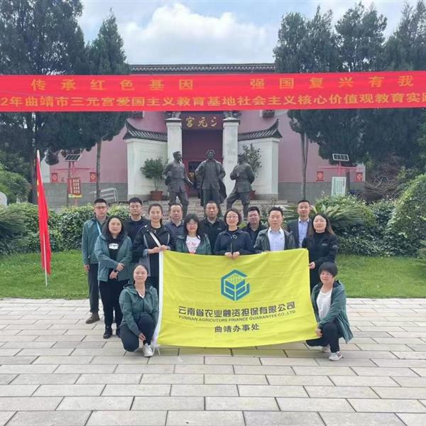 2022年5月25日,云南農(nóng)擔(dān)公司高逢旸監(jiān)事長(zhǎng)攜曲靖辦事處員工前往曲靖市三元宮愛國(guó)主義教育基地參觀學(xué)習(xí),重溫紅軍長(zhǎng)征不朽的英雄歷史。