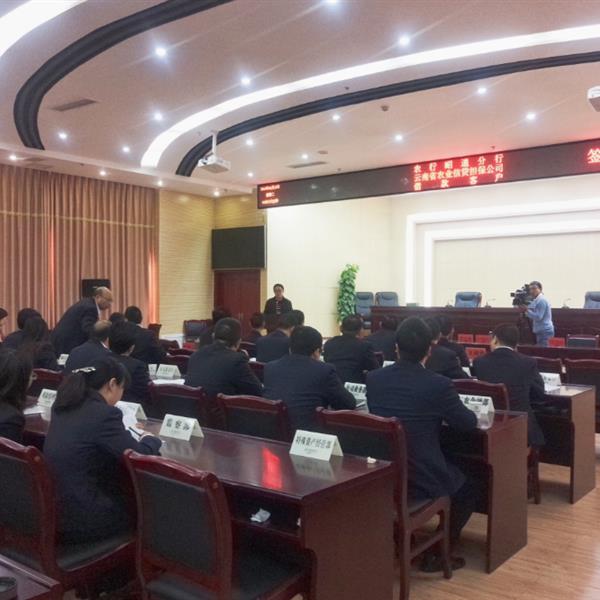 辦事處與昭通農(nóng)業(yè)銀行分行領(lǐng)導(dǎo)、各縣行長、信貸經(jīng)理及分行各部門在農(nóng)業(yè)銀行分行共同就前期審核通過借款客戶批量舉辦簽約儀式