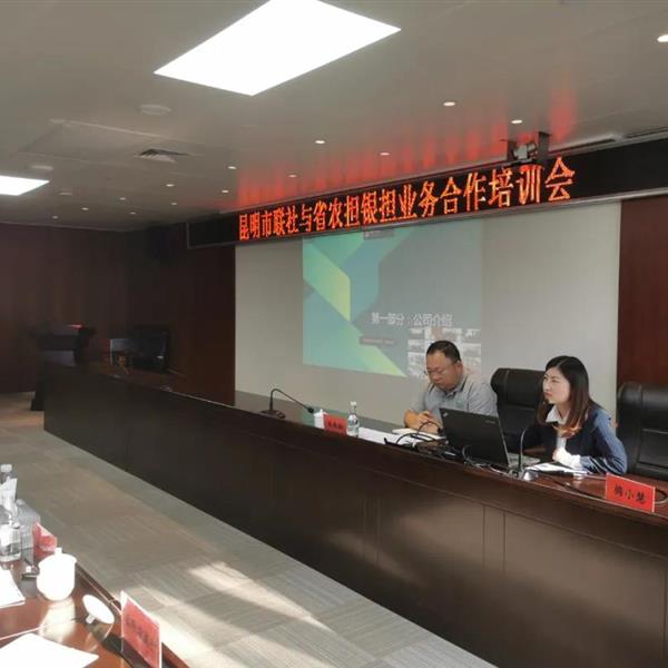 2020年11月18日,農(nóng)擔(dān)二部負責(zé)人張長浩攜昆明業(yè)務(wù)團隊到昆明市農(nóng)村信用合作聯(lián)社參加“昆明市聯(lián)社與省農(nóng)擔(dān)銀擔(dān)業(yè)務(wù)合作培訓(xùn)會”。