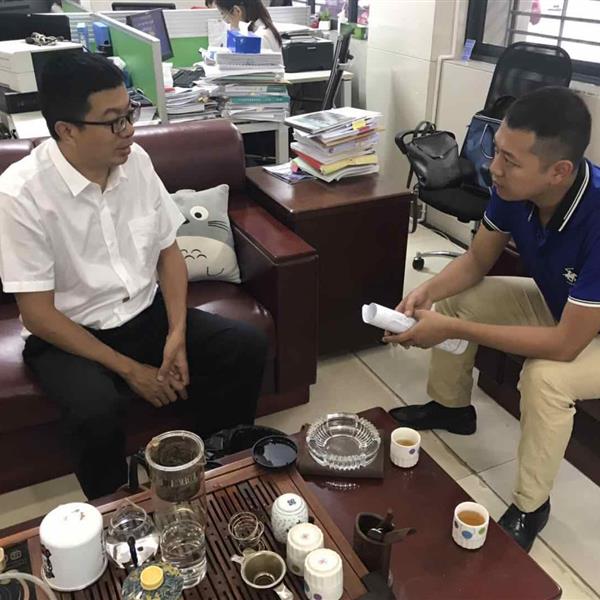 普洱辦事處業(yè)務(wù)主管戴維攜業(yè)務(wù)員段元英到景谷縣財(cái)政局副局長(zhǎng)石文良座談。