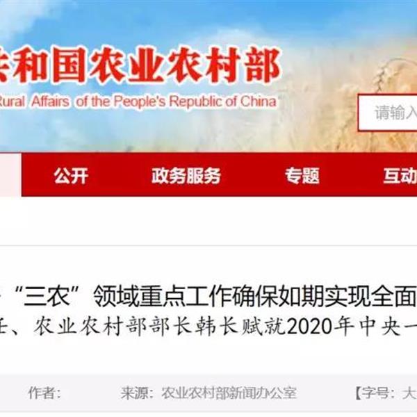 中央農(nóng)辦主任、農(nóng)業(yè)農(nóng)村部部長韓長賦就2020年中央一號文件答記者問